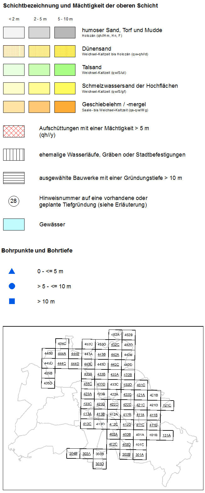 Geologischer Aufbau Berlins, Schichten und Mächtigkeiten, Schichtfolge über Sachdatenanzeige